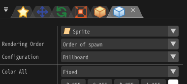 Specify the order in which sprites are drawn among sprites generated from the same node. For "Order of spawn", the first generated particle is the first drawn, while in "Reversed", the first generated particle will be drawn last. That is, in the order of generation, the drawing of the last generated particle is given priority over the first generated particle.