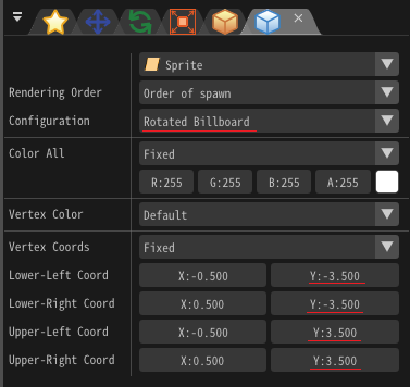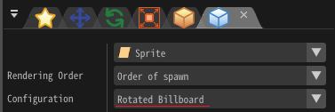 Rotated Billboard is a layout method in which the rectangular shape faces the front while the Z axis rotation is enable.