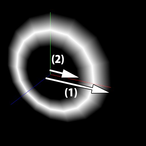 The shape of the ring is specified by the outer ring (1) and the inner ring (2) of the "Render Settings" window. Here, you specify the direction (x) to the outside of the circle and the length (y) in the axial direction.