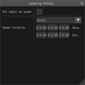 The "Spawn method" window is not displayed in the initial setting. You select "Window -> Spawn method" from the menu bar. When you select it, the "Spawn method" window will be displayed.