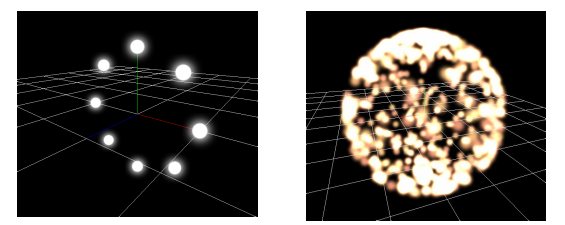 In Effekseer you can specify the spawn method. In the spawn method, you can specify the initial pose when particles are generated. For example, you can arrange particles in a circle or sphere.