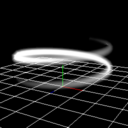 The parent node rotates and the child nodes move along it to represent the sword. The following is a simple movie. Red is the parent node's particle and green is the child node's particles.
