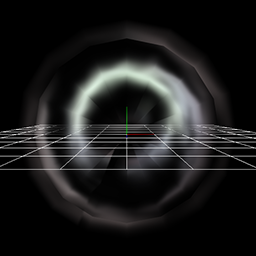 This effect is an example combining ring and UV scroll. The image on the left was applied to the ring with adjusted parameters. the center image is the result of applying left image without distortion. The image on the right uses distortion with UV scroll. White particles were scattered in all directions.