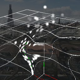 Let's change the drawing priority of the Particle node. If you change the drawing priority, you can see that the particles of the Particle node are distorted to the Distortion node.