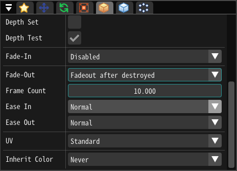 In Fade out within lifetime, the particle is faded out by deletion due to lifetime, but not by deletion due to trigger.