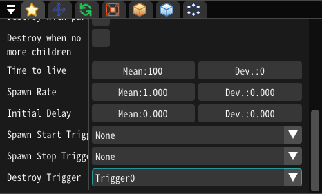 Particles deleted by a trigger may disappear instantly, which may be unnatural.