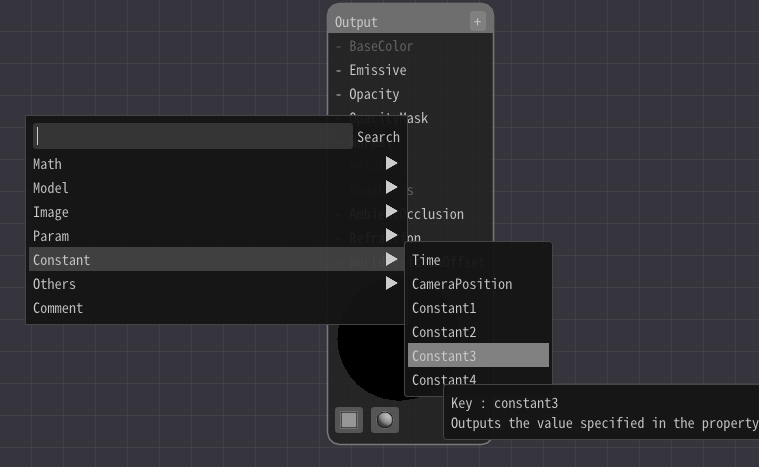 Then, left-click on the Constant3 node and enter a value from the input field on the left of the screen.