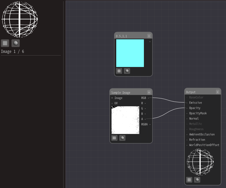 Therefore, connect A in the Sample Image to Opacity in the Output node.