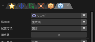 表示する図形の角の数です。 角が多いほど円に近くなりますが、あえて少なくして多角形にすることもできます。