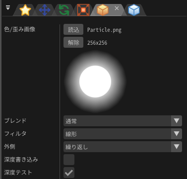 本章では、パーティクルに画像を表示します。 今までは白い四角でしたが、白い四角が画像に変わります。 加えて、パーティクルが徐々に透明になったり、色が変わったりするようにします。