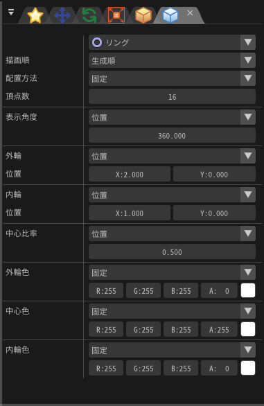 | 描画 | 外輪-始点(中心) | x=1, y=2 |