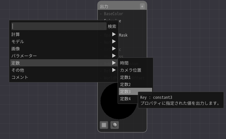 右クリックを押して、定数3ノードを追加します。