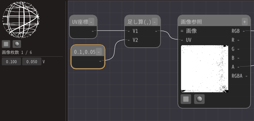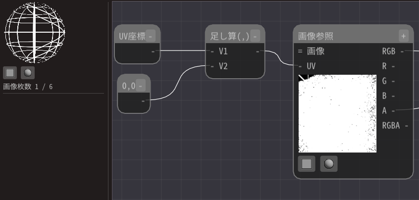 画像参照ノードのUVは表示に使用する画像の画素の位置を指している値です。