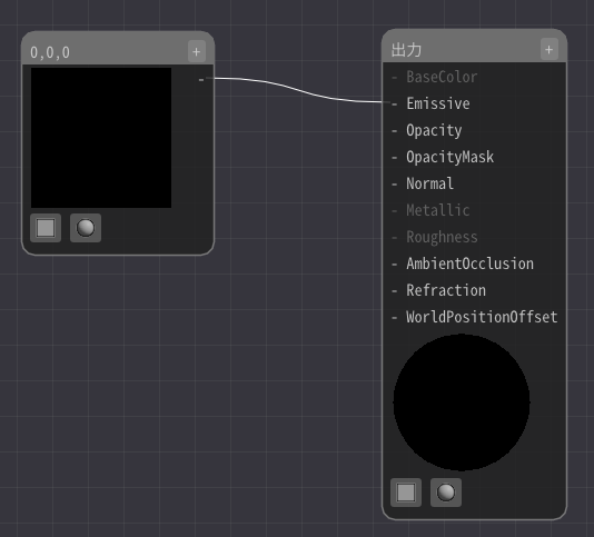 定数3ノードと出力ノードのEmissiveと接続します。