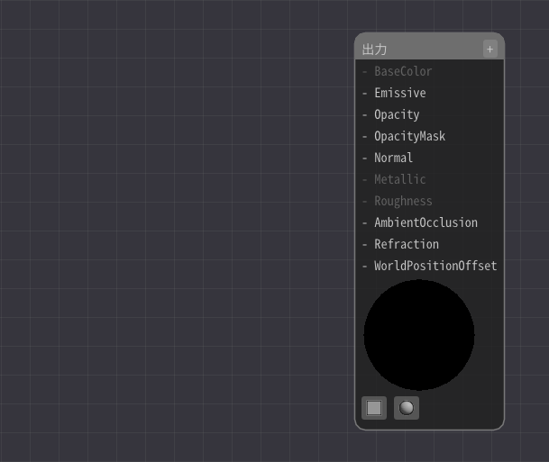 最初は出力ノードのみ存在します。 この、出力ノードに接続された値がパーティクルに描画されます。